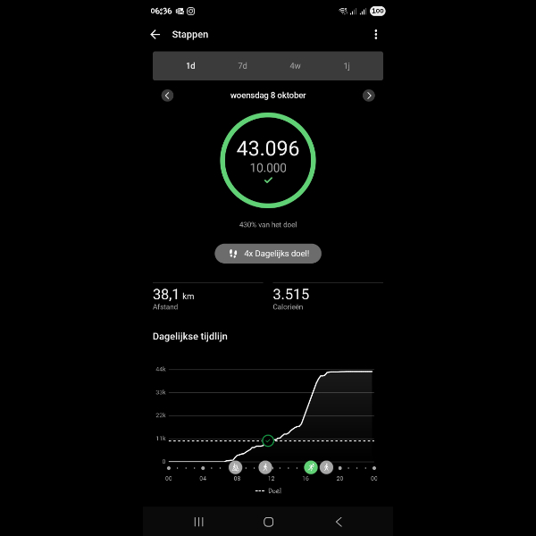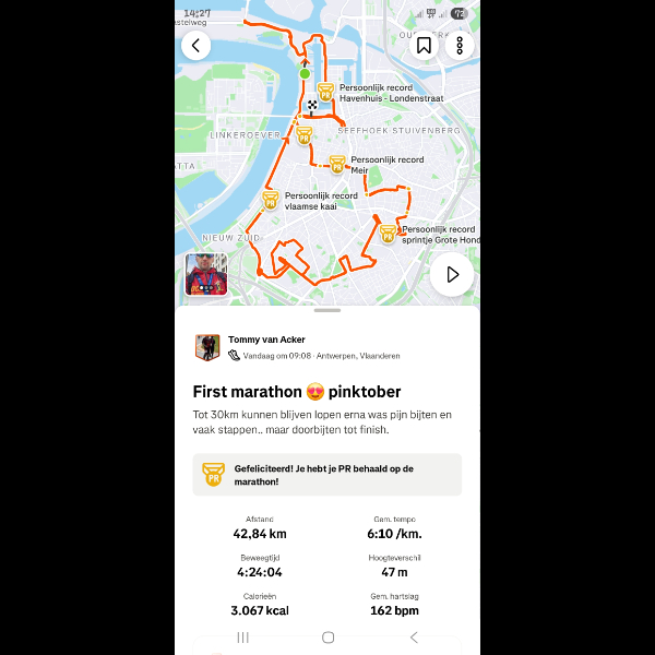 Thursday 9th Oct Op het werk weer alles te voet gedaan en na werk nog halve marathon gaan lopen. Share