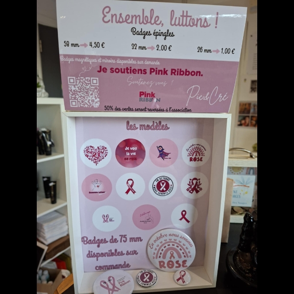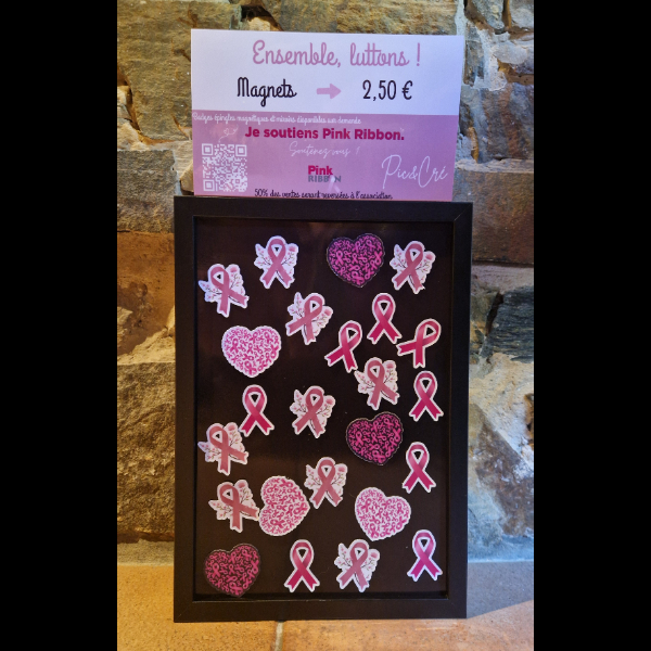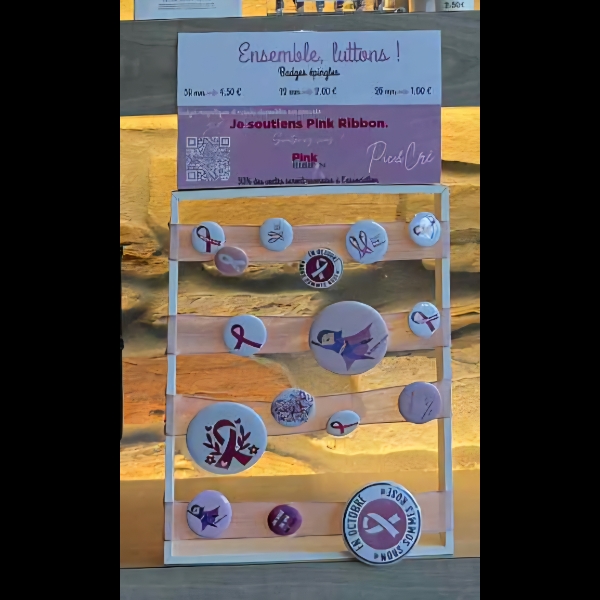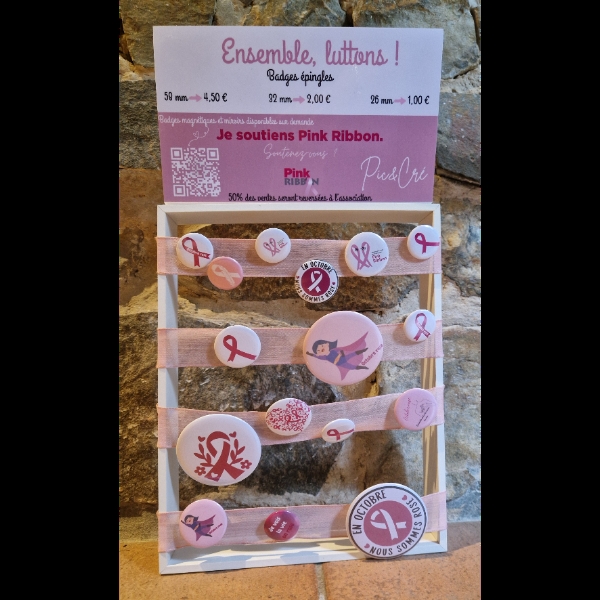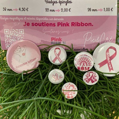 À l’occasion d’Octobre Rose, j’ai créé avec passion une collection unique de badges et magnets solidaires.
