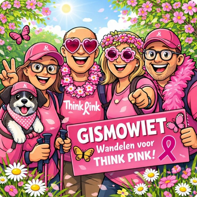 Hallo! Met ons team wandelen wij mee met de dertiende editie van De Roze Mars, een initiatief van Pink Ribbon, de nationale organisatie die zich inzet voor de strijd tegen borstkanker. Van 1 tot en met 31 mei streven wij elks om meer te wandelen en meer te bewegen per dag en gaan we de uitdaging aan tegen andere teams. Omdat de strijd tegen borstkanker nog lang niet gestreden is, dragen wij via deze weg ons steentje bij.
